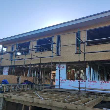 This house was a uniquely challenging project. A double storey house set into a sloped site. The challenge was to get the engineering for the ground floor framing to support a uninterrupted 6m, 255mm slab for the first floor. We were able to achieve this with minimal structural steel and by using a thicker framing member. This was designed to take the loads to the foundations. And by pairing it with a Voidcon slab system, which kept the deflection to, better then standards, we were able to achieve the goal of a wide open ground floor without beams inside of the living area.
